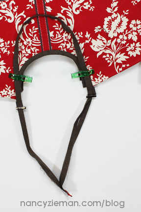 Follow the instructions within the packaging of the Trace ‘n Create Hobo Tote Template, including these modifications for the handles.