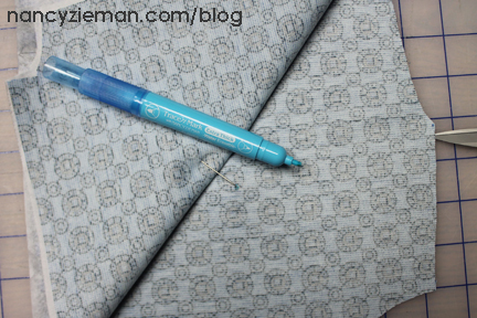 Mark center of each block with a wash-away marking pen . This block has a seam at the center, which eliminates this step.
