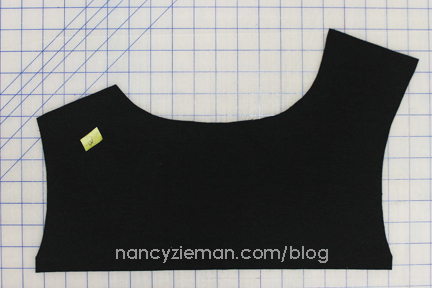 Note from Nancy: Knits need to be pretreated just as woven fabrics do. Excess finishes need to be removed, and shrinkage needs to be controlled before cutting out the fabric. Prewash your knit fabric using a mild soap or baby shampoo to keep colors bright.
