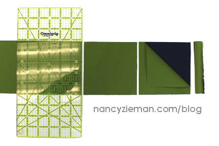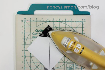 Make a pressing template from a 4″ square of tagboard. In the center of the pressing template, draw a straight line from corner to corner.