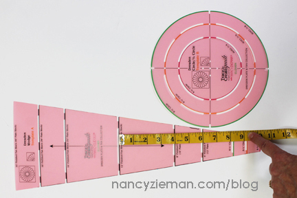 Follow the directions on the Trace ‘n Create Quilt Template—Dresden Plate Collection to determine the finished diameter.