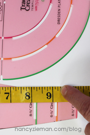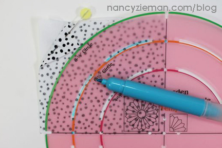 For this block, the diameter is traced at the 6-1/2″ diameter mark on the circle template.