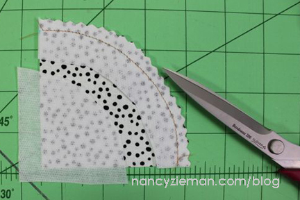 Stitch circle to Dresden Plate with a straight stitch, blind hem stitch, or decorative stitch.