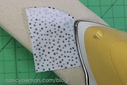 Layer the circle fabric and interfacing, nonfusible side to right side of fabric. Trace desired circle size onto interfacing.
