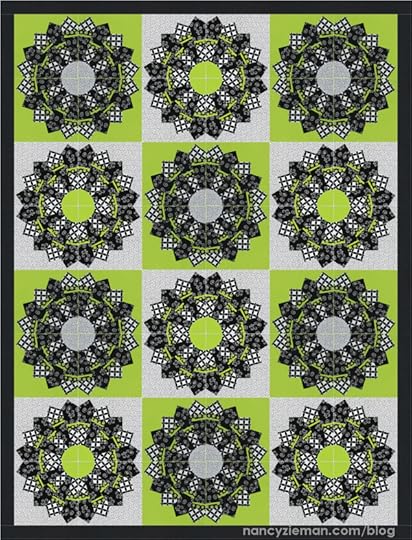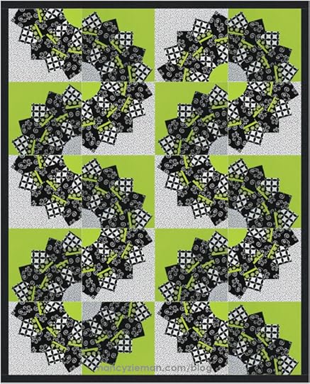 Lastly, a Dresden block quilt for your wild side. This concept has Dresdens pointing in all directions to make a sort of “snake” through the quilt top. No sashings were used, but a border has been added.
