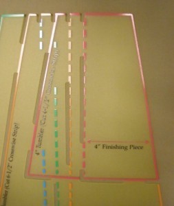 The strip width to cut for each size is printed on the template.