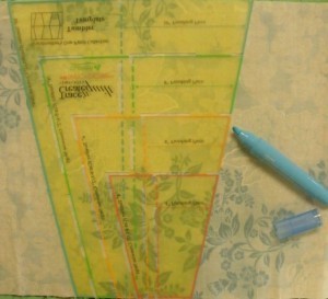 Choose five fabrics plus a white background fabric. The tool that I used to create the quilt is the Trace ‘n Create Quilt Template—Dresden Collection . This unique tool gives 12″ to 40″ Dresden plate options.