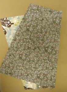 Fold one yard of fabric wrong sides together and cut out two layers. I used vintage pattern weights that I’ve been using for years and a rotary cutter for a speedy cutting process.