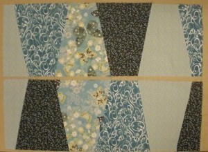 Cut crosswise strips to create all of the parasols and then sew together into a strata. Exact cutting instructions are given in the Sew Grand Dresden Quilts book.