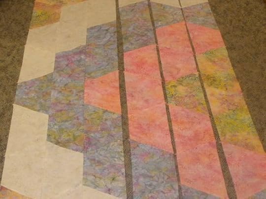 Then came the thought to place a straight seam where the Y-seams would normally intersect. Okay, not approved by quilt judges, but my quilts are functional and I sew for fun, not blue ribbons. Plus, I made the these faux hexagons BIG, up to 8″, not the traditional 1″–2″.