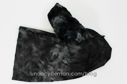Stitching the long 40″ seam, creates a faux fur fabric tube.