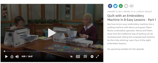 Watch Quilt with an Embroidery Machine in 8 Easy Lessons (Part One and Part Two) on Sewing With Nancy online.