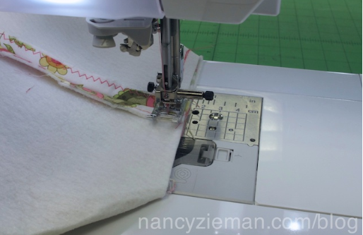 Using a Schmetz Universal Size 80 Needle stitch bottom seam with 1/2″ seam allowance. Press seam open.
