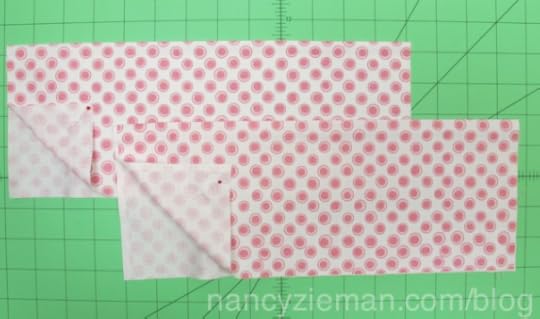 Place two outer lower bag rectangles right sides together. Pin at lower edge.