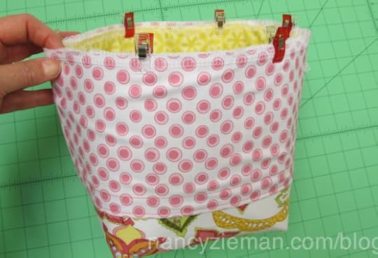 Tuck lining inside outer lower bag, with wrong sides together. Wonder Clip .