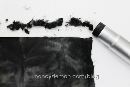 Using Clover’s Hot Ruler and an iron, fold and press under 1/2″ to wrong side along 22″ top edge of both canvas rectangles.