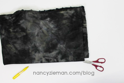 Turn two 22″ x 36″ rectangles of canvas fabric vertically, with wrong sides facing up.