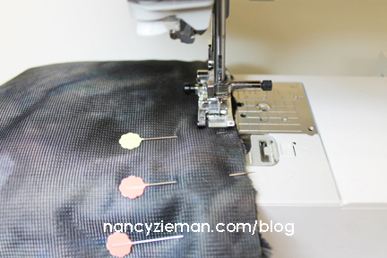 Because we’re using both dark and light fabrics, opt to use clear monofilament thread in the top and bobbin — when stitching Caddy Center Dividers in place.