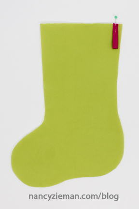 Lay the template on the remaining Pellon Fleece and cut one layer for Stocking Back.
