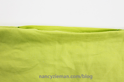 Backstitch at the start and finish, leaving 4″ unsewn along the lining’s straight edge.