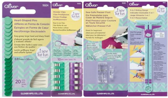 Clover-USA: Wonder Clips(10pc/Asst.), Mini Wonder Clips(20pc), I Sew For Fun Roll & Press, Pin ‘n Stow, 5-in-1 Sliding Gauge, I Sew For Fun Heart-Shaped Magnet Pin Caddy, Rotary Cutter(45mm), 6 ‘n 1 Stick ‘n Stitch Guide. A $150 value