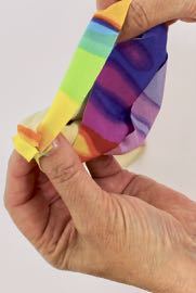 Gently pull the far end of the tube until cut edges meet. The outside layer of fabric will be wrong side out.