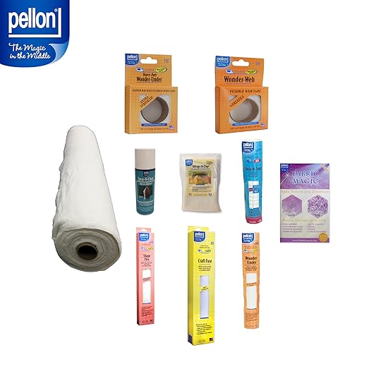 Pellon: Heavy Duty Wonder-Under Fusible Web Tape, Wonder-Web Fusible Web Tape, Spray-N-Clean, Wrap-N-Zap, Stick-N-Tear, Fabric Magic, Shape Flex, Craft-Fuse, Wonder Under Paper Backed Fusible Web and Grab N’ Go Batting. A $110 value