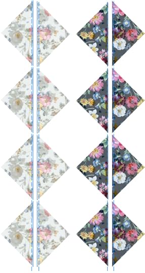 Randomly arrange twelve 5″ Fabric Squares in three rows of two, and two rows of three-as shown. Snap a digital picture of the arrangement to use as a reference for later stitching fabric squares together.