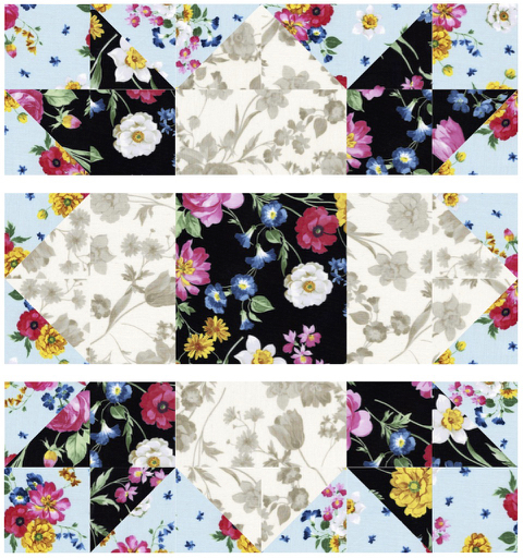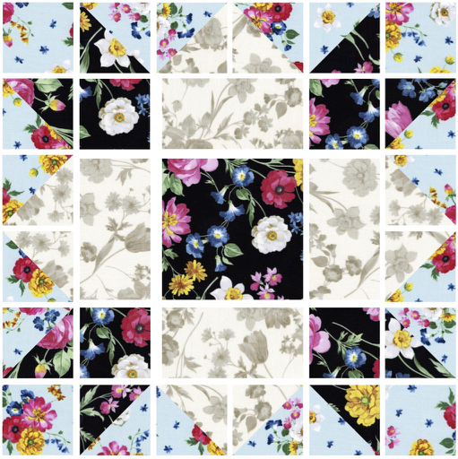 It might be difficult to comprehend, but the next block, Silent Star, is almost identical to the last block, Boy’s Nonsense. The main difference in construction is the center block—all the other blocks are the same. This is the case where fabric choices totally change the design!
