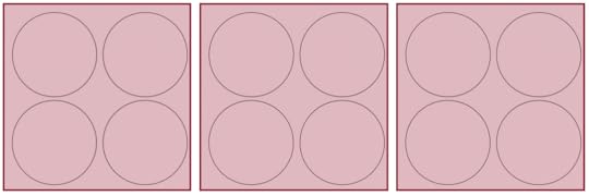 Trace four 2-1/4″ circles (about the size of a juice glass) on each of the three cranberry red fabric squares.