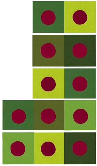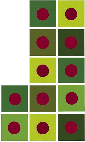 Using an iron, press circles to the center of all twelve green fabric squares.