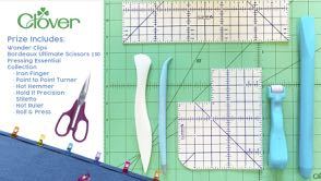 Clover-USA: Iron Finger, Point 2 Point Turner, Hot Hemmer, Hold it Precision Stiletto, Hot Ruler, Roll & Press, Wonder Clips (10pc/Asst) and Bordeaux Ultimate Scissors 130. A $154 value