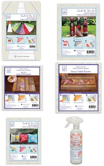 June Tailor : Quilt As You Go Wine Totes—3 pack, Quilt As You Go Pillow Cover—3 pack, Quilt As You Go Tree Skirt—one pack, Quilt As You Go Placemat—Venice Pattern, Quilt As You Go Table Runner—Venice Pattern and Starch Savvy, 16 ounce trigger. An $80 value