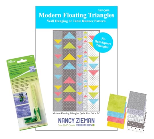 Stitch it! Sisters: NEW! Modern Floating Triangles Wall Hanging/Table Runner Bundle. Including: NEW! Modern Floating Triangles Wall Hanging/Table Runner Pattern, Riley Blake Cotton Fabrics and Clover’s Ultimate Quilt ’n Stitch Presser Foot by Nancy Zieman. A $62 value