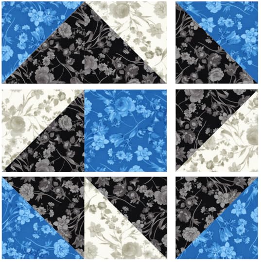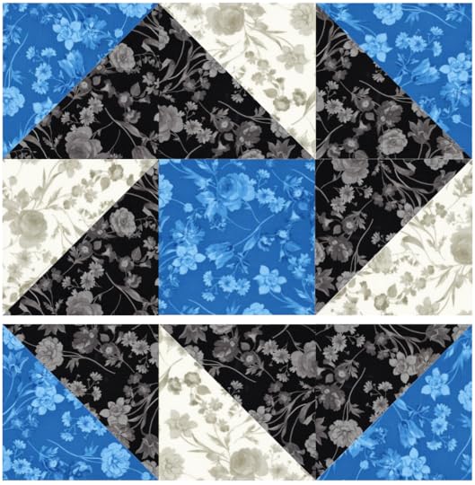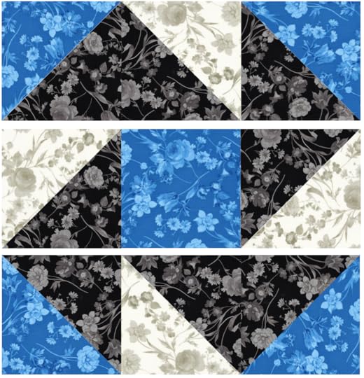 Her comment is: I love this month’s block, The fabrics really make it pop. And making flying geese with half square triangles makes the block a breeze to create.