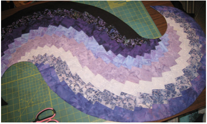 Think outside the traditional patchwork world and use a multisized Dresden template to add a modern twist to a tried ‘n true design. We call it the Dresden Melody with five half-Dresden plate designs that seem to flow melodically together. The finished Dresden Melody Table Runner measures 28″ x 82″.
