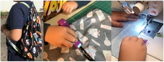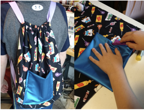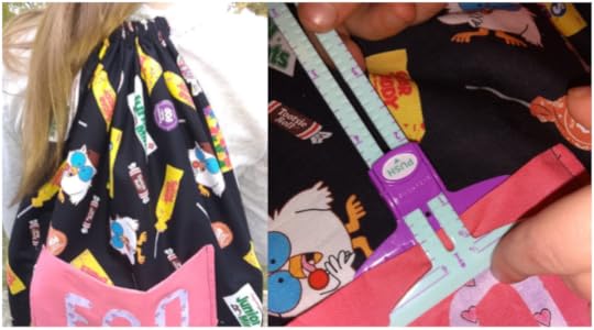 Her comment is: My grandson is five and already an enthusiastic sewist. I’m thinking this project would make a great “going to grandma’s” cinch sack and organizer. And what’s not to love about that Riley Blake Designs fabric? I know he’ll love it at first sight, as did I. Thanks for this opportunity to advance his love of sewing with this wonderful project.