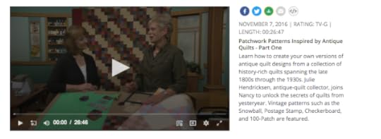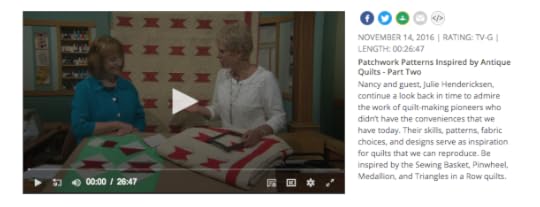 Watch Patchwork Patterns Inspired by Antique Quilts ( Part one and Part Two ) on The Best of Sewing With Nancy online.