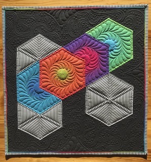 Mini Quilts must be quilted through three layers by hand, by machine, or both.