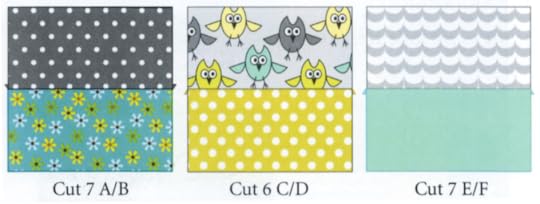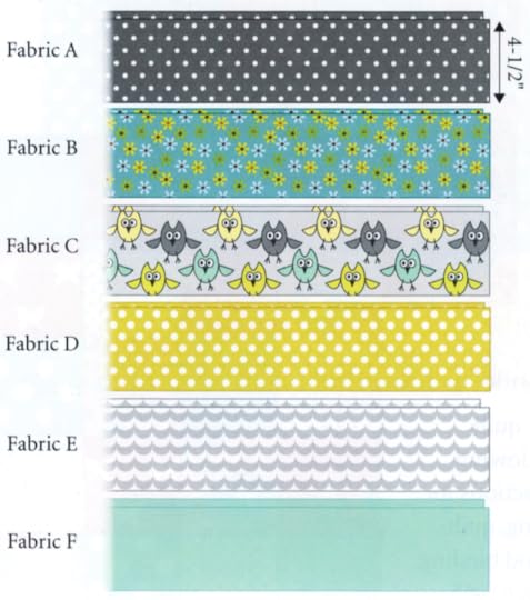 - Cut two 4½” crosswise strips from Fabrics A–F.