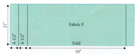 - Cut one 50″ x 41-1/2” rectangle from Fabric F, for backing with self-binding. Set aside.