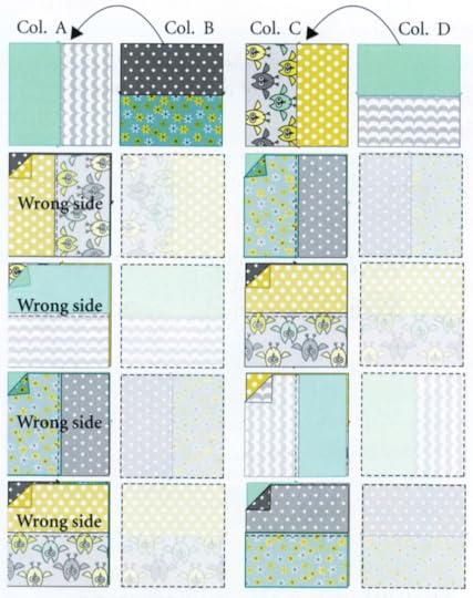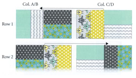 Place stitched blocks from columns C/D onto stitched blocks from columns A/B, right sides together. Stitch two block units into rows.