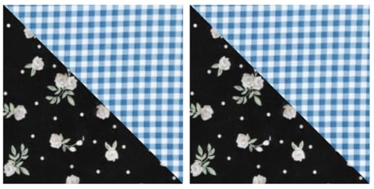 Align 7-1/4″ squares from Afternoon Picnic Black Rose and Blue Gingham, right sides together.