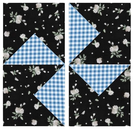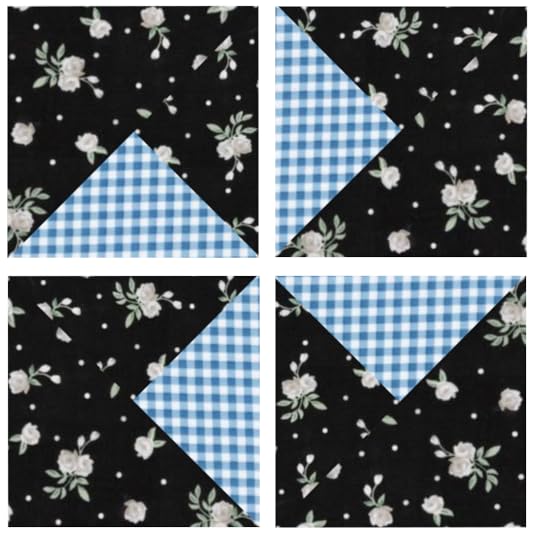 Align each 1/2-square triangle to one 6-7/8″ Afternoon Picnic Black Rose square, right sides together.