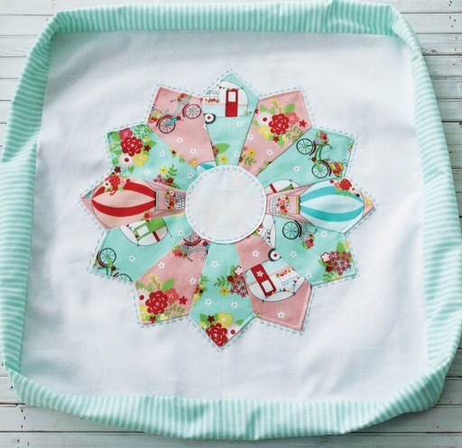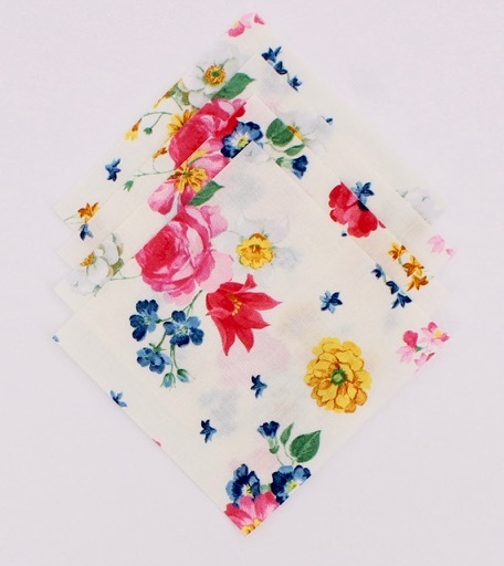 Cut four 3-7/8″ squares of Afternoon Picnic Cream Floral