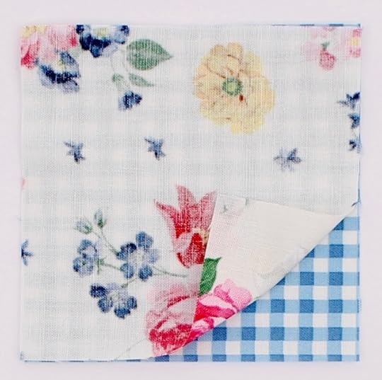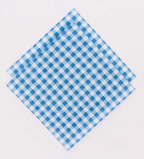 Cut two 3-7/8″ squares of Afternoon Picnic Blue Gingham