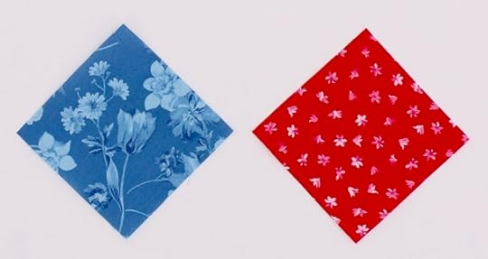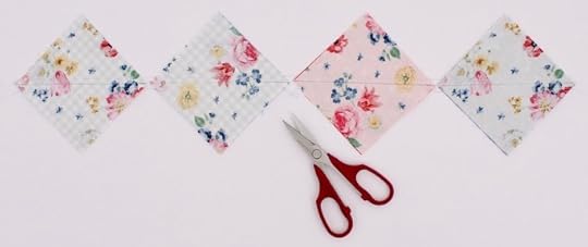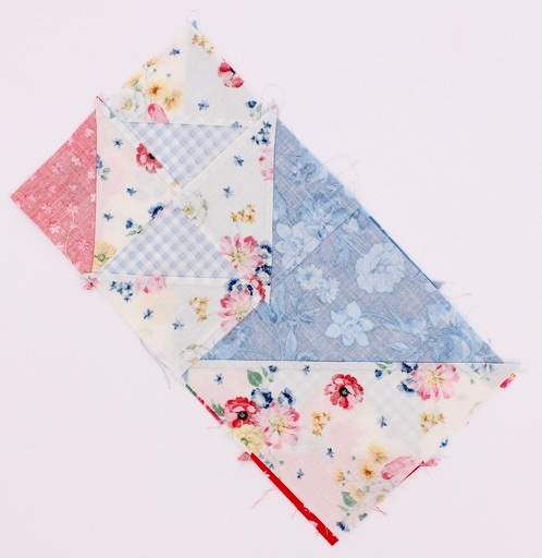 Create two 1/2-square triangle blocks of Afternoon Picnic Cream Floral and Afternoon Picnic Red Flower