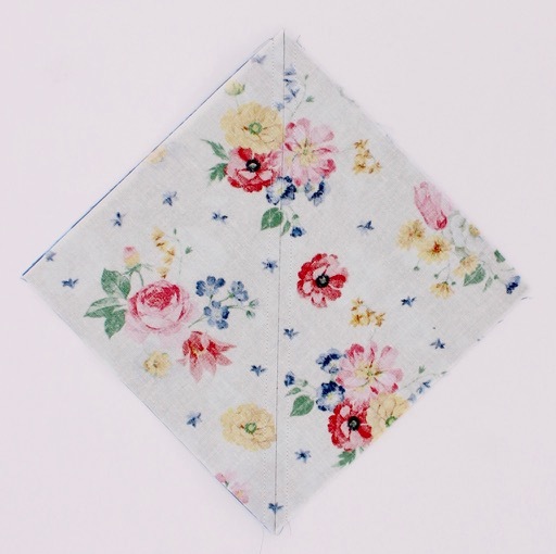 Create two 1/2-square triangle blocks of Afternoon Picnic Cream Floral and Afternoon Picnic Blue Tonal