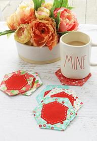 Make one 3-7/8″ block set of Afternoon Picnic Cream Floral and Afternoon Picnic Red Flower