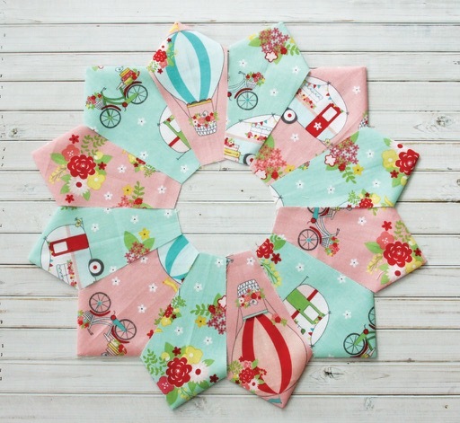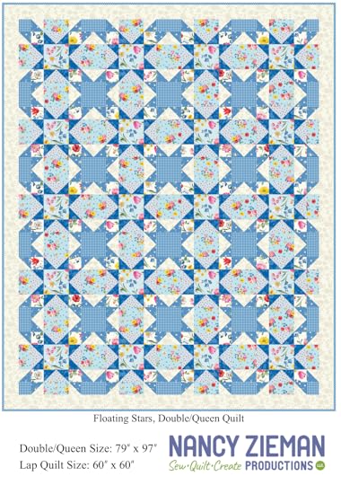 Make one 6-7/8″ block set of Afternoon Picnic Cream Floral and Afternoon Picnic Blue Tonal